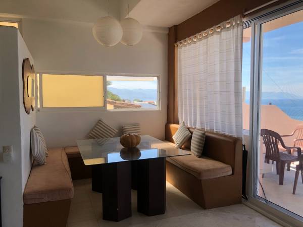 Centric 2 bed 2 bath apartment in PV with loft, huge terrace and spectacular view of Banderas bay available for long term rent. MXN$45,000 per month plus MXN$1000 maintenance fee covering wifi, water, common areas electricity bills, elevator and pool maintenance.