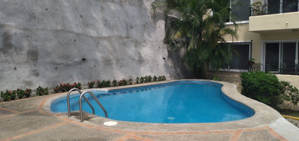 Apartment for Rent - 2 bedroom, 2.5 bath, fully furnished, equipped kitchen, AC in every room, master bedroom with a KS bed, second bedroom with 2 full beds, both have their own private bathroom, half a bath for visits, washer and dryer on unit, large shared pool plus terrace with a dipping pool and beautiful ocean view, less than 10 minute walk to the beach and the romantic zone, Amapas area, right off the Hwy 200 so expect some road noise. Sorry no pets