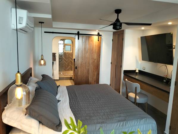 Completely remodeled, washer and dryer, AC, shared pool with a great view. The monthly rate is $45,000 MXN. Minimum 12-month lease. Max 2 people. Pets are not allowed. Includes all utilities such as HOA fees, water, gas, and internet. Quiet area. Conchas chinas A car is necessary but taxis or Uber are affordable and convenient. Contact me for More informations