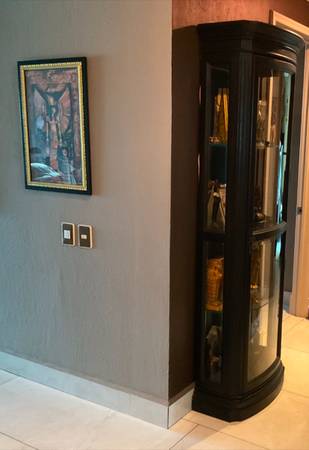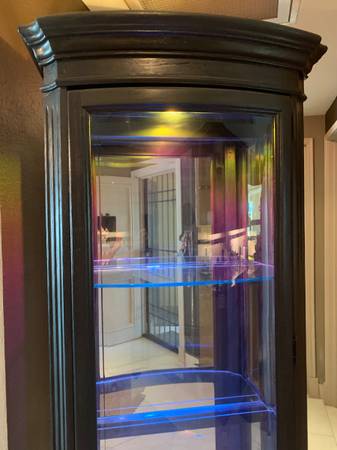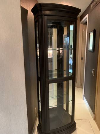 SOLID WOOD TALL AND NARROW GLASS CHINA CABINET WITH LIGHTS...price in pesos