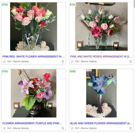 VARIOUS FLOWER ARRANGEMENT price in pesos Every thing is for sale. Moving back to Canada. Everything must go. Contact me by email, text or call. I’m also available on IM or WhatsApp if you have any...