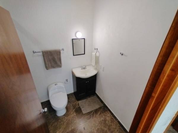 bathroom for visitors, an equipped kitchen integrated into the dining and living room area, a laundry room and a balcony. With beautiful views of the city from the rooftop, it has covered parking and a cozy terrace to enjoy the views and sea breeze. Located on 1st level , this