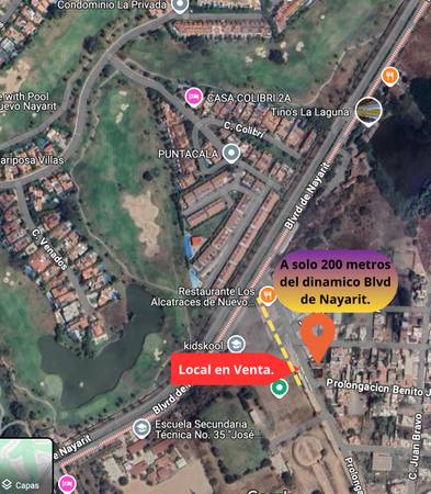 The property is located at the corner of Prolongación Benito Juárez, just 200 meters from the main avenue and 2 blocks from Boulevard Bahía de Banderas, in the eastern area of Jarretaderas, Nuevo Nayarit. This strategic location provides visibility and accessibility to both local traffic and tourists.