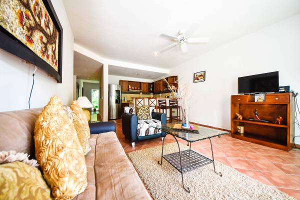 Villas Mares de Verano A5 offers a single-level layout, with two cozy bedrooms featuring a total of three beds for guest comfort, plus a studio with a convenient additional sofa bed. The property includes a spacious living room and a breakfast area for social gatherings or relaxation moments, along with a fully equipped kitchen that ensures convenience during the stay. Additionally, access to cable TV and internet is provided for guest entertainment. The terrace offers stunning views of the surrounding mountains, creating a peaceful and relaxing atmosphere. To enjoy the tropical climate, guests can access the pool, which is equipped with a table, chairs, and an umbrella for added comfort and enjoyment. In summary, Villas Mares de Verano A5 offers a comfortable and pleasant stay, with stunning views for an unforgettable experience in Mismaloya. UNFURNISHED/ 5 MINUTES WALK TO THE BEACH. PRICE IN USD