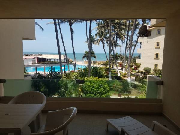 Nice 1 br 2ba furnished 2nd floor oceanfront condo at Bahia del Sol on beautiful 7 mile beach in Nuevo Vallarta aka Riviera Nayarit just north of Puerto Vallarta. Great location next door to Ocean Terrace and Luma. 10 minute walk/bike path to Paradise Village Marina, farmers market and shopping. Approx. 900sf 1 level layout with large windows, spacious deck, beautiful gardens, pool, palapas and whitewater view. Enjoy the famous PV sunsets on Banderas Bay from your deck and an equally beautiful sunrise over the Sierra Madre mountain views from your bedroom window with great cross ventilation. Perfect property for digital nomad, snowbirds, retirement, vacation home, income rental etc. Great bi-lingual administration and front desk personnel.