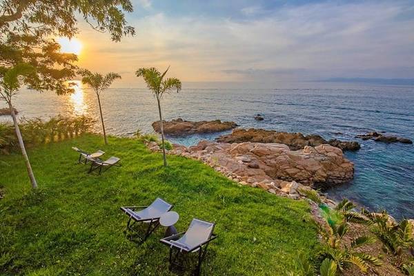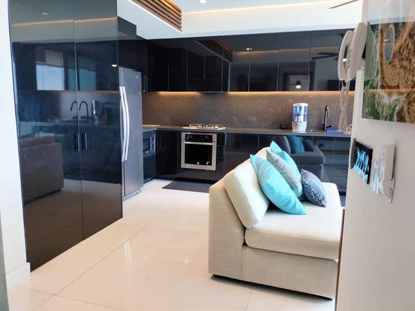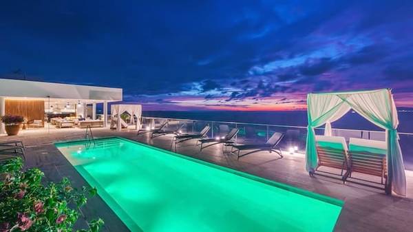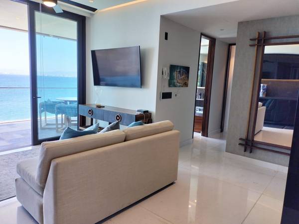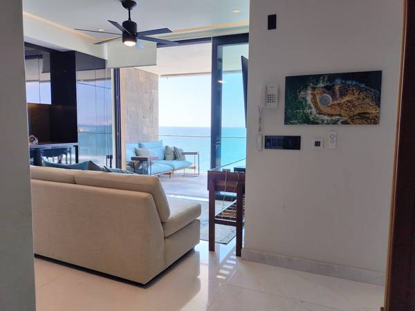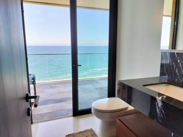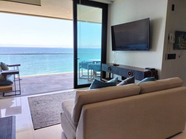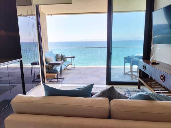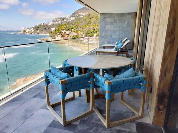 - Terrace/balcony with lounge area, dining area, and lounge chairs
