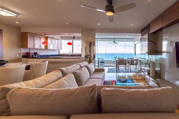 This 3 Bedroom condo has a 180 degree ocean view that is just steps away from the semi-private side of Playa Gemelas beach. The vast blue Pacific can be seen from every corner.