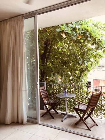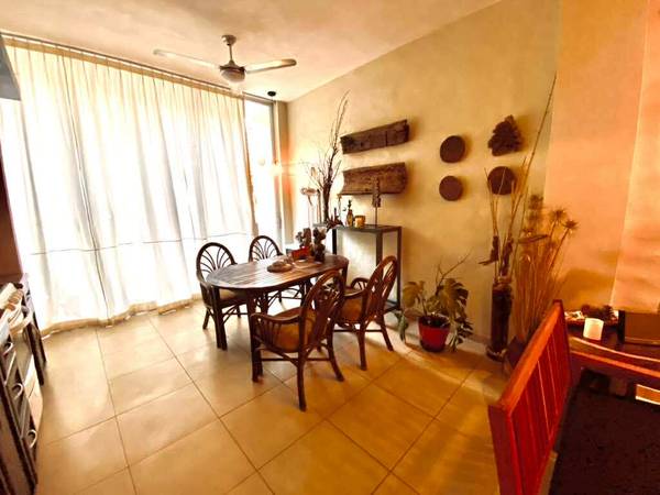 full closet. The spacious main bathroom, with natural lighting and ventilation, with ceiling fan and half bathroom for your visitors. Very well equipped kitchen, and a comfortable sofa bed in the living room with small terrace off the dining and kitchen area.